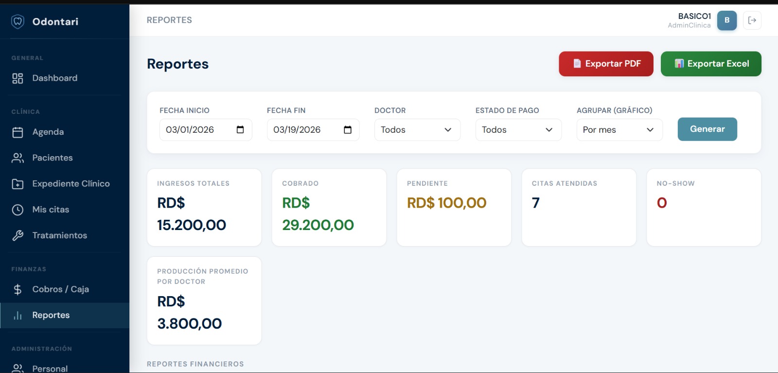 No sabes cuánto facturaste este mes, qué tratamientos son más rentables ni cuántos pacientes no regresaron. Operas a ciegas.